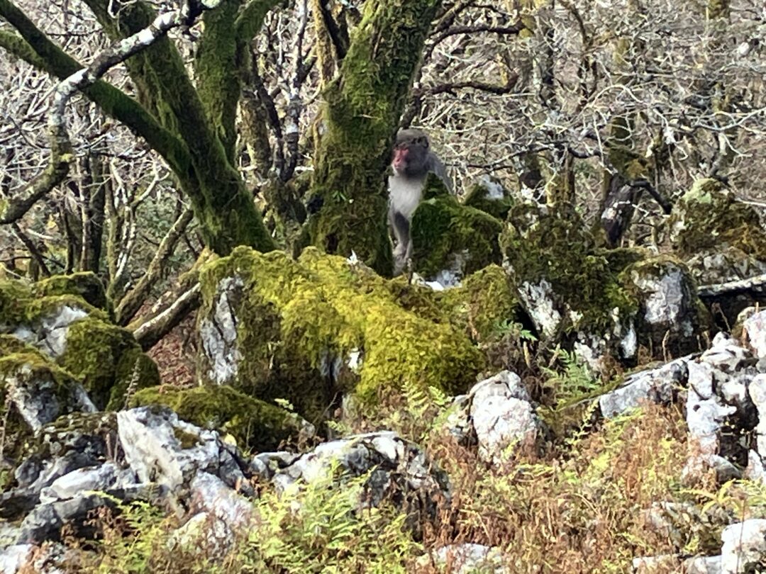 下山し始めてすぐに、鳴き声が聞こえたので振り向いたらお猿さんがいました。