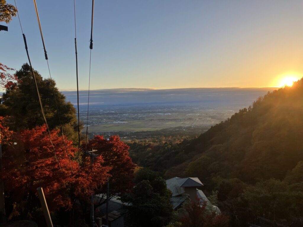 朝日と紅葉です。