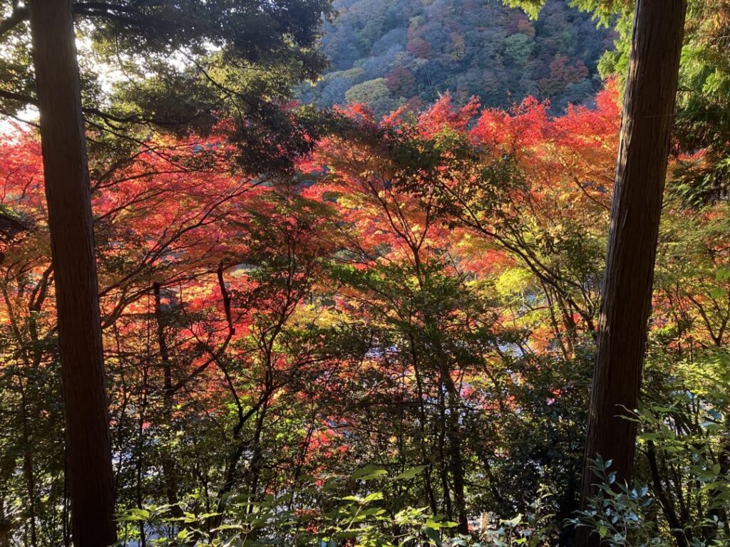 ここから、養老の滝まで紅葉を満喫しながら歩いていきます。