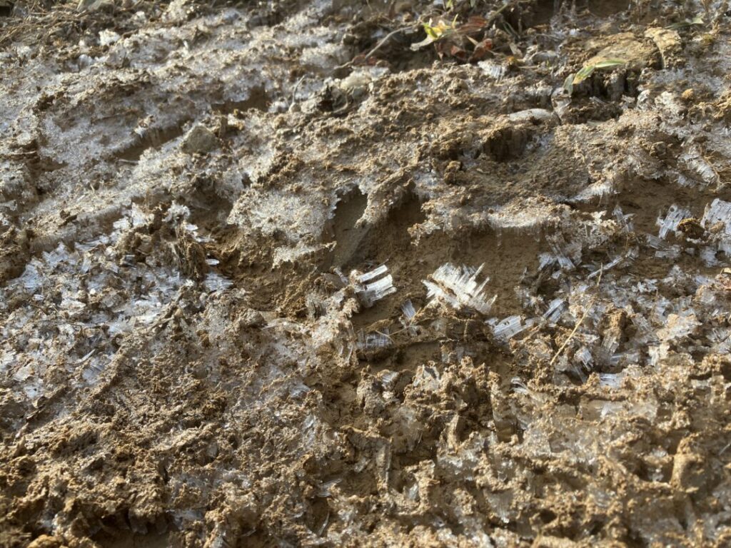 800m付近の日陰には霜柱も。